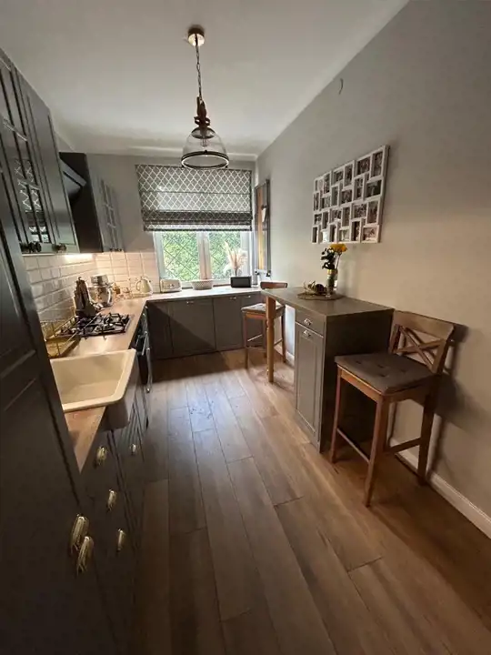 Wszystkie okna plastikowe. Media miejskie. Ogrzewanie gazowe. Na podłogach parkiet dębowy. Kuchnia i łazienki w pełni umeblowane (lodówka, zmywarka, płyta gazowa, piekarnik elektryczny, pralka), pozostałe umeblowanie do uzgodnienia.
