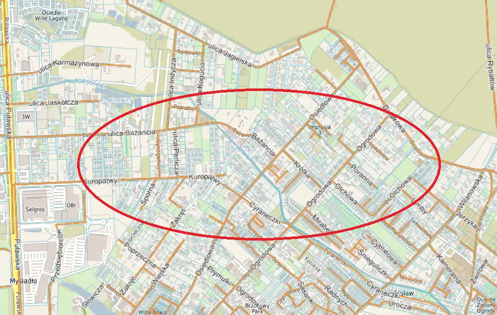 Działka budowlana o powierzchni 1000 m2, na Ursynowie (Dąbrówka blisko Józefosławia), w rejonie ul. Kuropatwy.