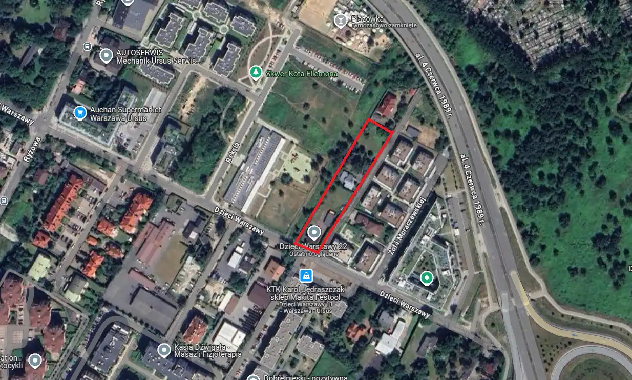 Do sprzedaży działka inwestycyjna o powierzchni 3704 m2, zlokalizowana w Ursusie w rejonie ul. Dzieci Warszawy.