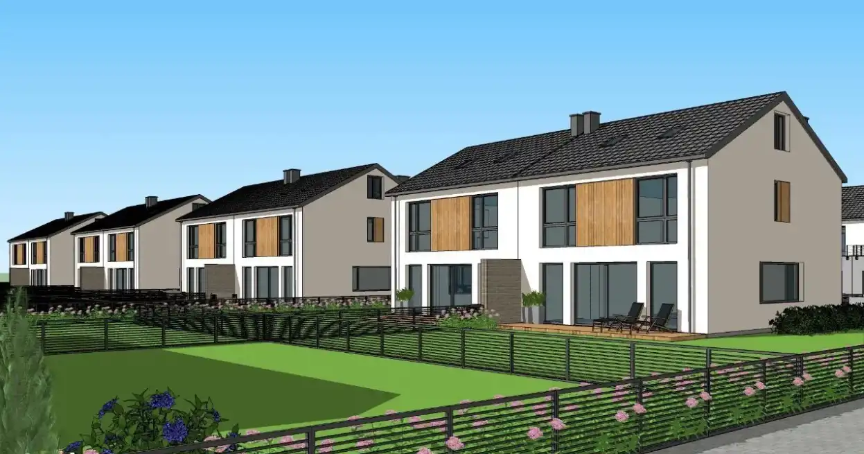 DLA TERENU WYDANE ZOSTAŁO PRAWOMOCNE POZWOLENIE NA BUDOWĘ OSIEDLA 16 DOMÓW JEDNORODZINNYCH W ZABUDOWIE BLIŹNIACZEJ = 32 SEGMENTY