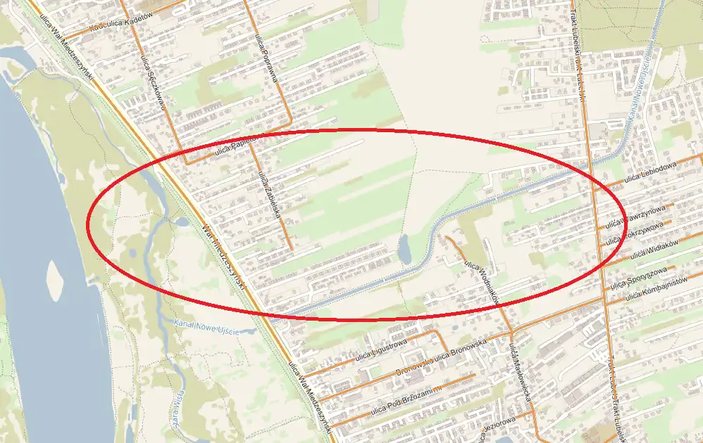 Do sprzedaży teren inwestycyjny o powierzchni 15992 m2, zlokalizowany w Wawrze (Wawer Las), w rejonie ul. Zabielskiej.
