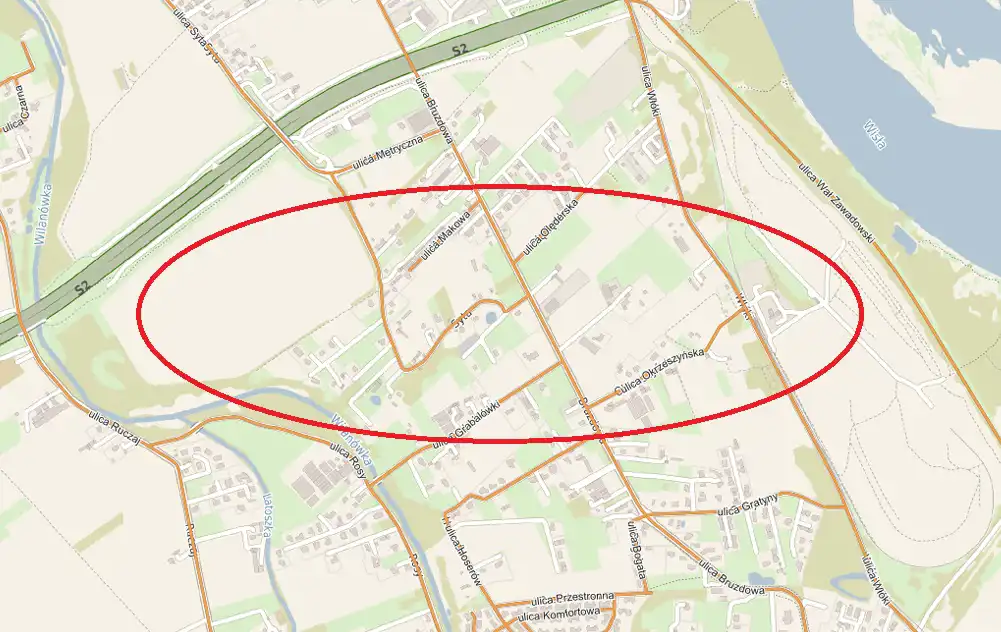 - blisko do przejazdu nad trasą S2 ulica Sytą.