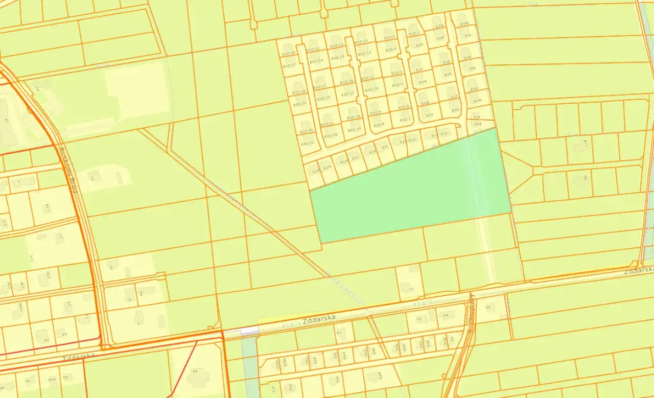 Złożony wniosek o wydanie Decyzji o warunkach zabudowy na 32 domy w zabudowie bliźniaczej, każdy dwulokalowy.