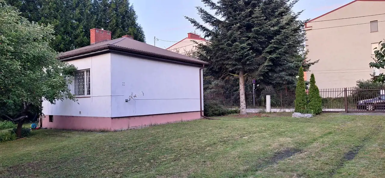 Działka jest zabudowana małym domem mieszkalnym wolnostojącym.