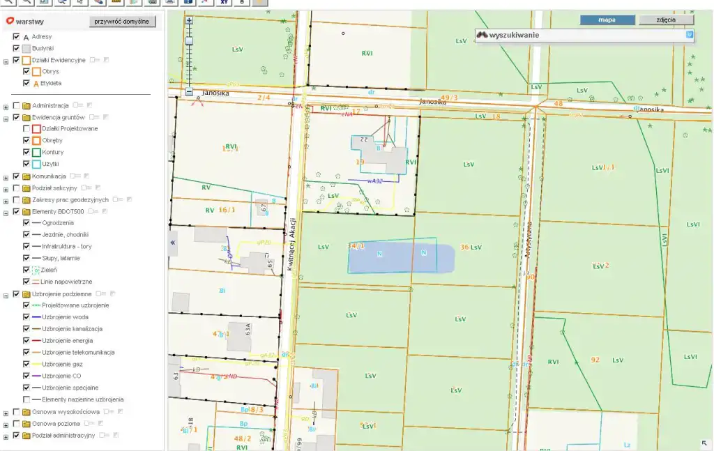 - Działka Niezagospodarowana, częściowo zalesiona, prostokąt