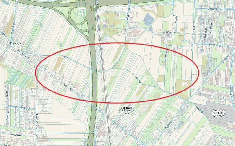 Na sprzedaż działka inwestycyjna o powierzchni 5100 m2, położone na terenie Ursynowa, (Jeziorki Północne), blisko trasy S2, w pobliżu stacji PKP Warszawa Dawidy.