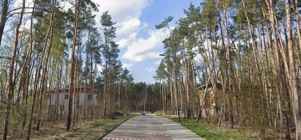 Działka w lesie, narożna. W najbliższym sąsiedztwie nowe domy na dużych działkach. Bardzo ładna i zadbana okolica.