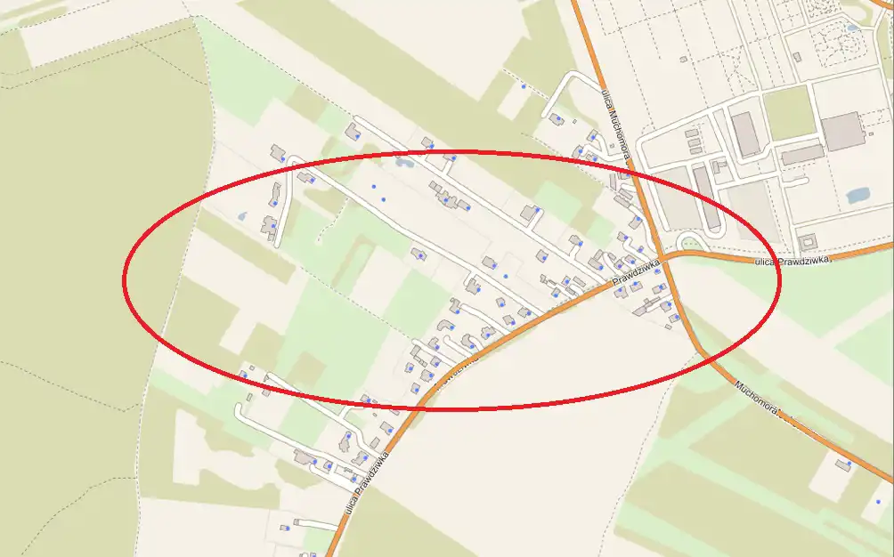 - Media Woda: brak; Kanalizacja: brak; Prąd: w ulicy; Gaz: w ulicy