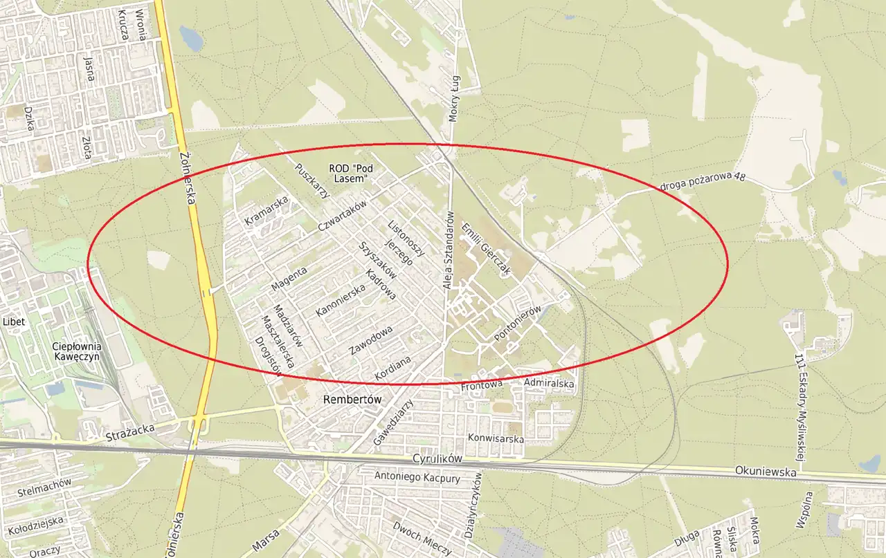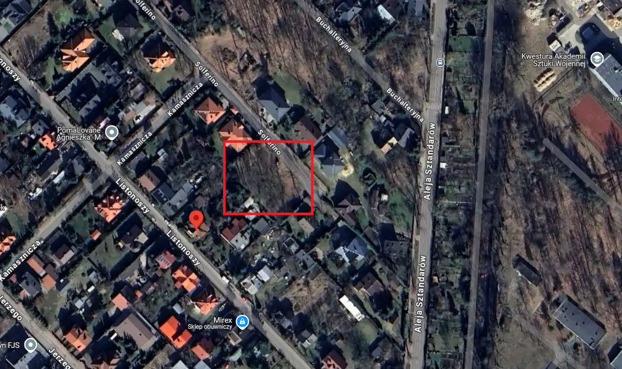 Do sprzedaży działka budowlana o powierzchni 1580 m2, zlokalizowana w Starym Rembertowie, w rejonie ulic Kadrowa, Czwartaków, Aleja Sztandarów.