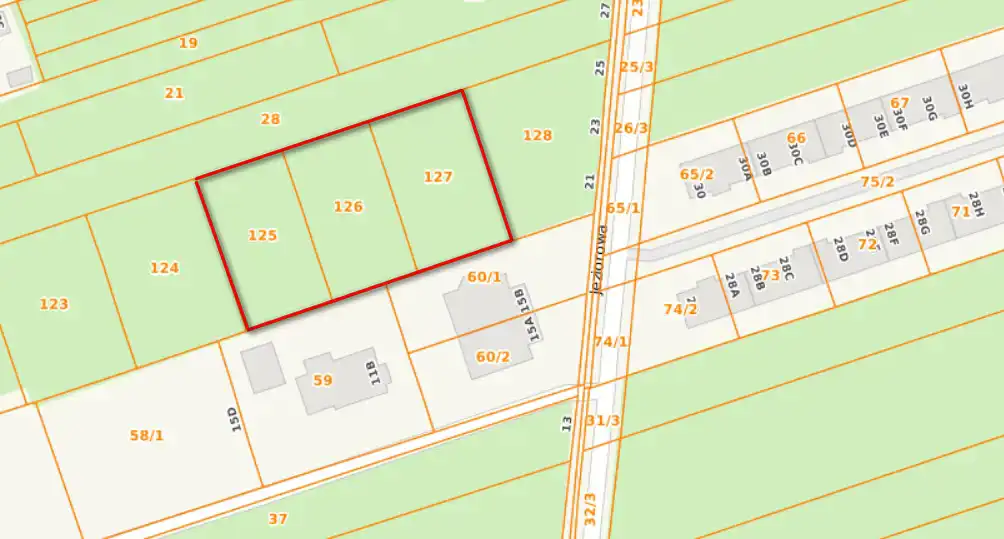 Teren o powierzchni 2006 m2, front szer. 60 m, nie objęty MPZP. Właściciel posiada prawomocne warunki zabudowy WZ.