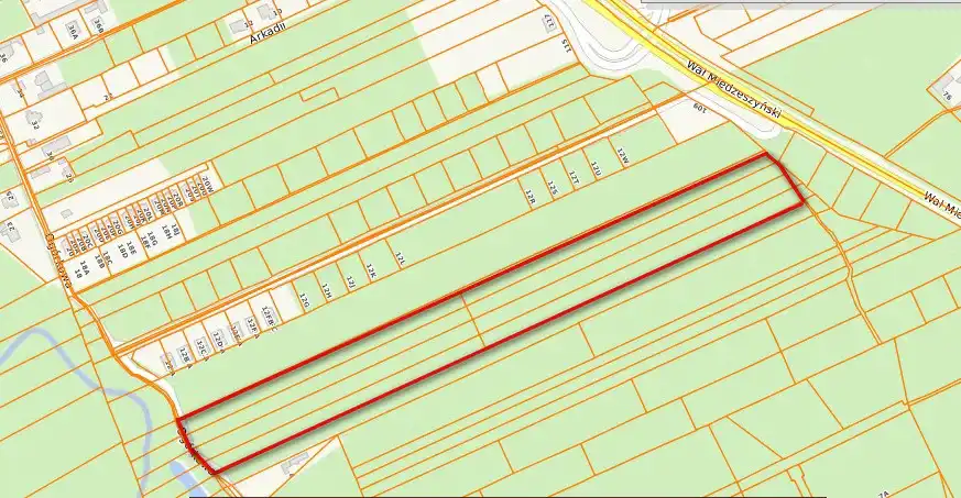 Teren o powierzchni 3,7 ha , szer. frontu 57 m, nie objęty MPZP. Przeznaczony pod zabudowę jednorodzinną i usługową. Wszystkie media ok. 50 m. , os. fizyczne. Dojazd asfaltem. Własność