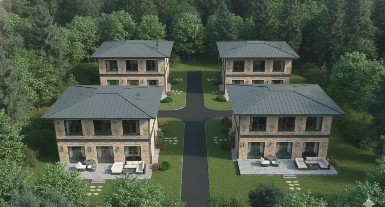 Wydane prawomocne pozwolenie na budowę budowę 4 budynków mieszkalnych, jednorodzinnych, wolnostojących, dwukondygnacyjnych.
