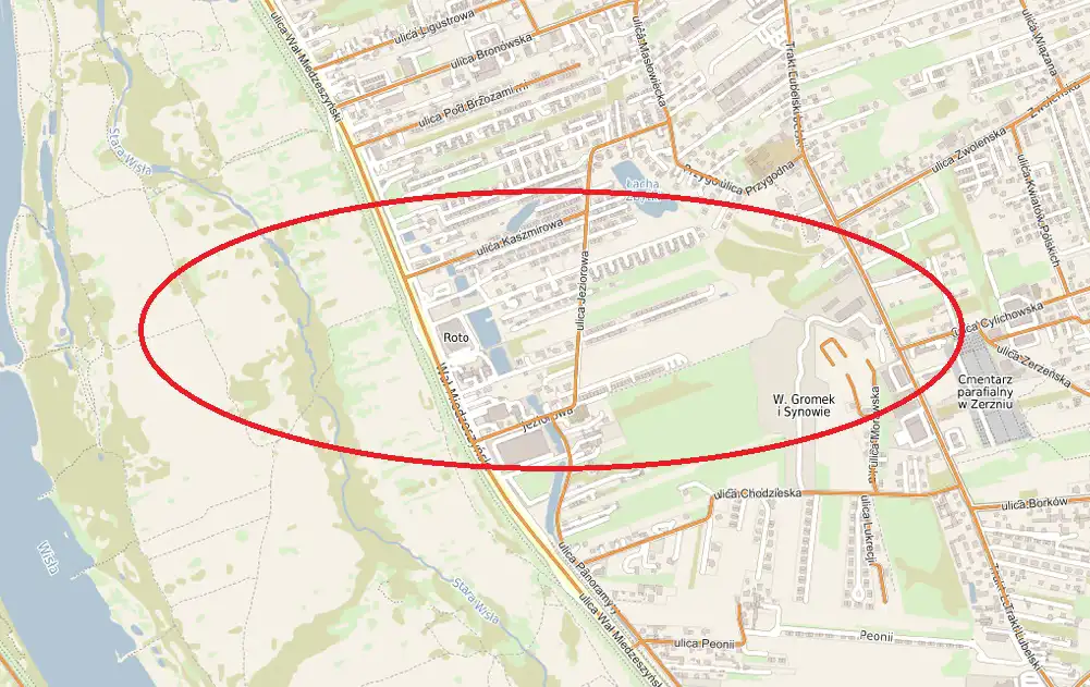 Działka budowlana o powierzchni 4200 m2 zlokalizowana w Wawrze (Zbytki), w rejonie ul. Jeziorowej.