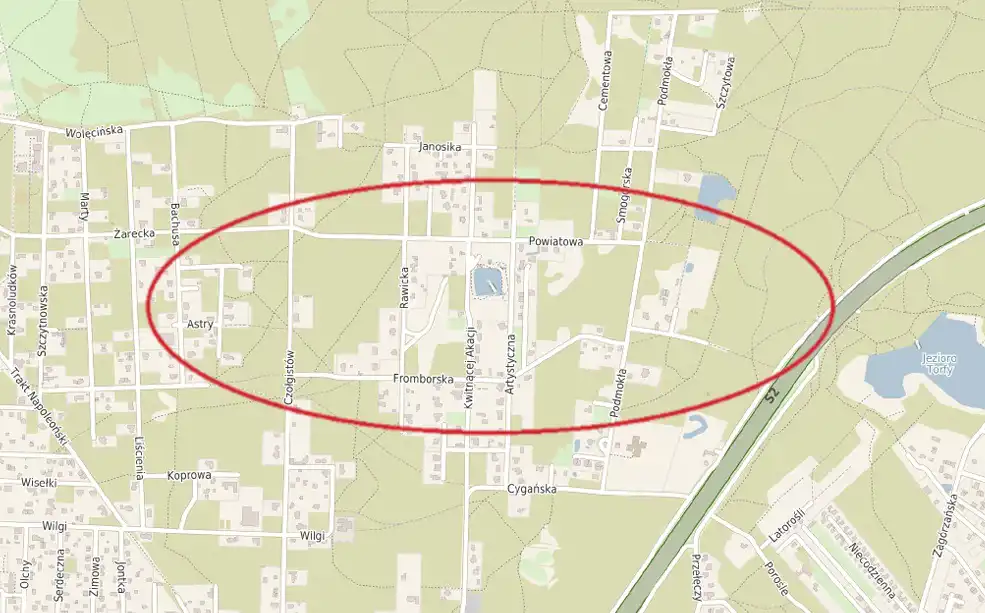 Oferujemy do sprzedaży działkę inwestycyjną o powierzchni 3987 m2, zlokalizowaną w Wawrze (Radość), w rejonie Fromborskiej.