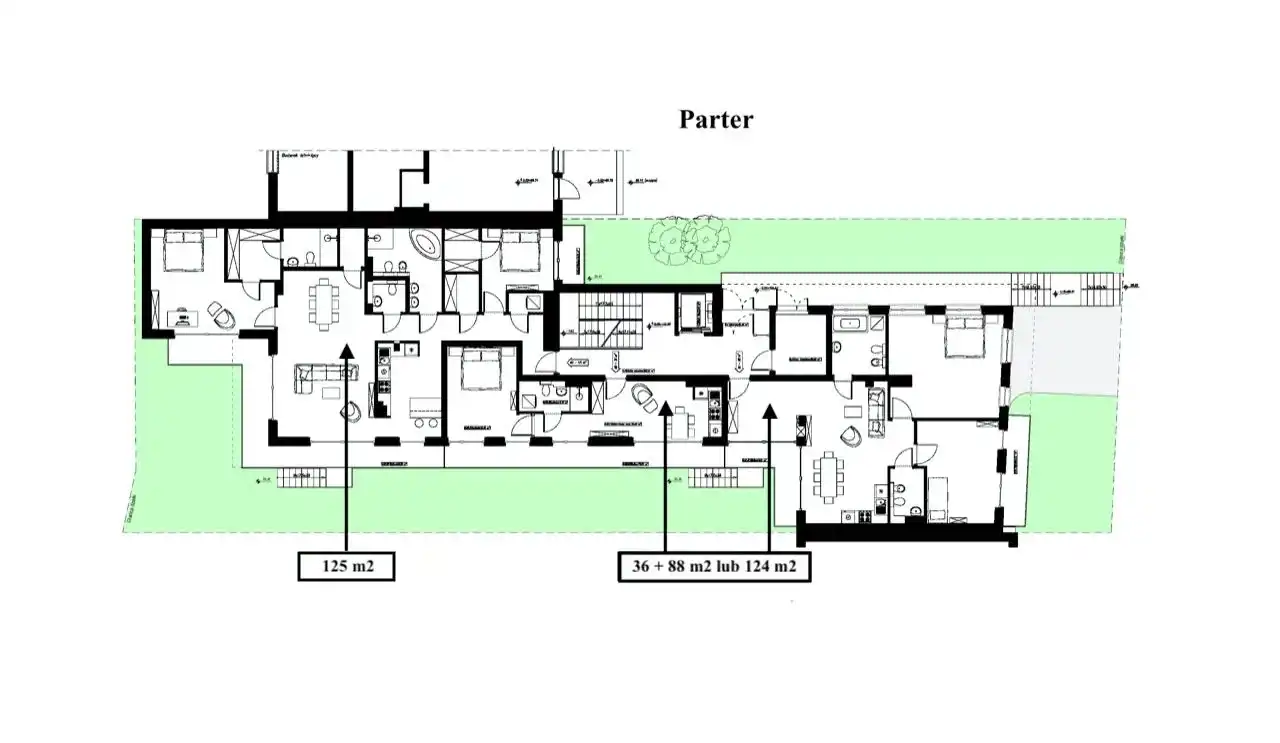 - zabudowa mieszkaniowa jednorodzinna lub wielorodzinna ekstensywna w postaci małych domów mieszkalnych do 8 lokali mieszkalnych w budynku,