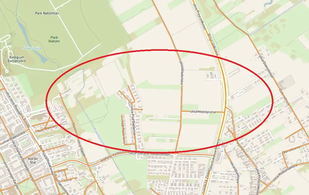 Dojazd ulicą Wiedeńską do ul. Korbońskiego (ok. 600 m), która łączy Wilanów z Ursynowem.