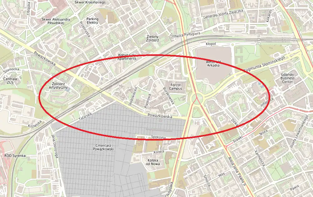 Na sprzedaż działka inwestycyjna o powierzchni 1700 m2, zlokalizowana na Woli (Powązki), w rejonie ul. Powązkowskiej i Ronda Radosława.