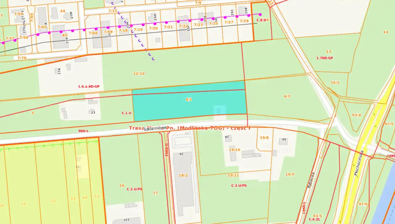 Działka zlokalizowana prawie przy samej ul. Płochocińskiej, w bezpośrednim sąsiedztwie planowanej trasy Mostu Północnego.