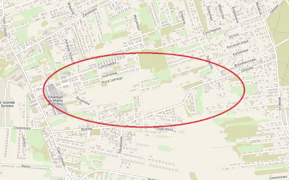 W najbliższym sąsiedztwie luźna zabudowa mieszkaniowa, jednorodzinna.
