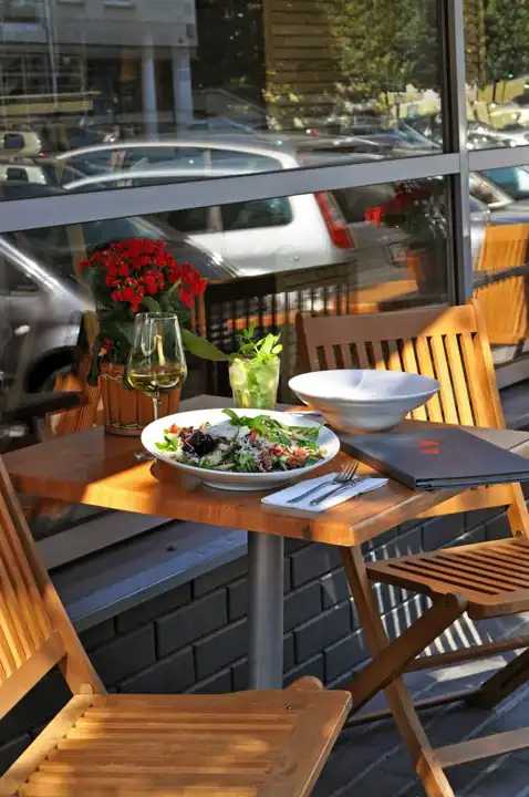 - Liczba miejsc dla gości - w środku: siedzących 75 + możliwość wystawienia 5 stolików dla 10 osób, na zewnątrz, wzdłuż okien.