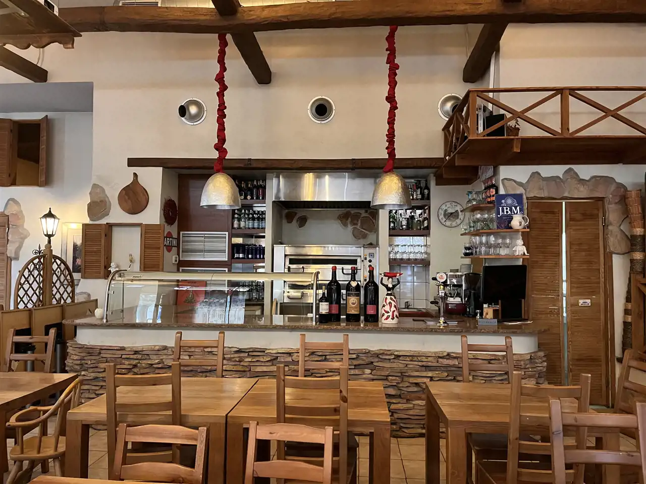 - Sala konsumpcyjna -w pełni umeblowana i wyposażona, składa się z części konsumpcyjnej oraz baru gdzie także jest stanowisko do przyrządzania pizzy oraz piec dwugrupowy oraz włoski ekspres do kawy.
