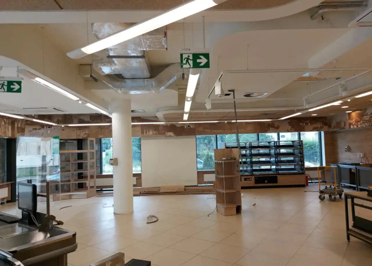 Bardzo duża przestrzeń handlowa (open space) oraz kilka pomieszczeń socjalnych.
