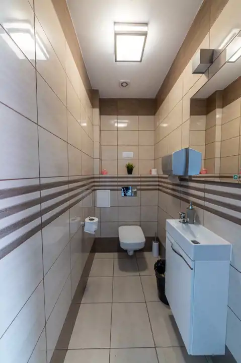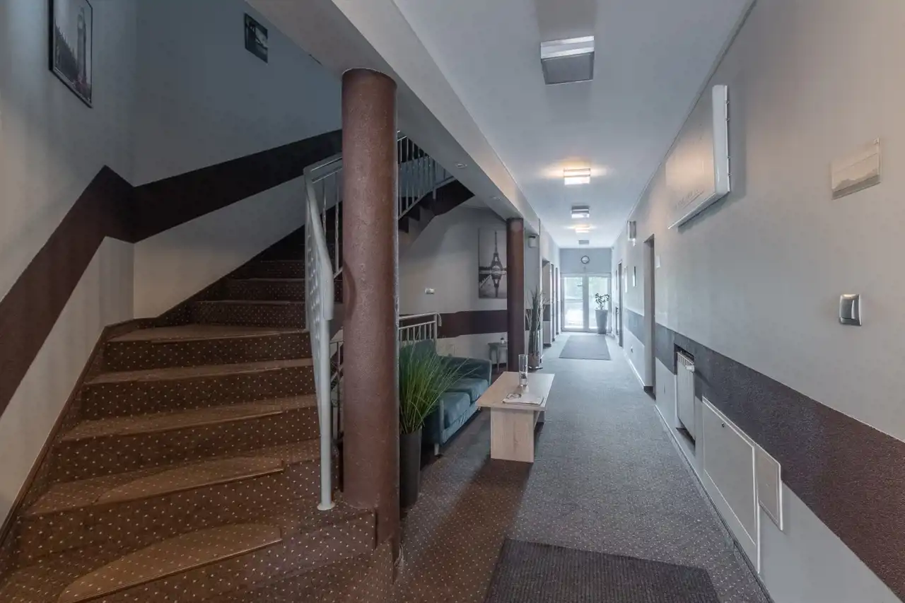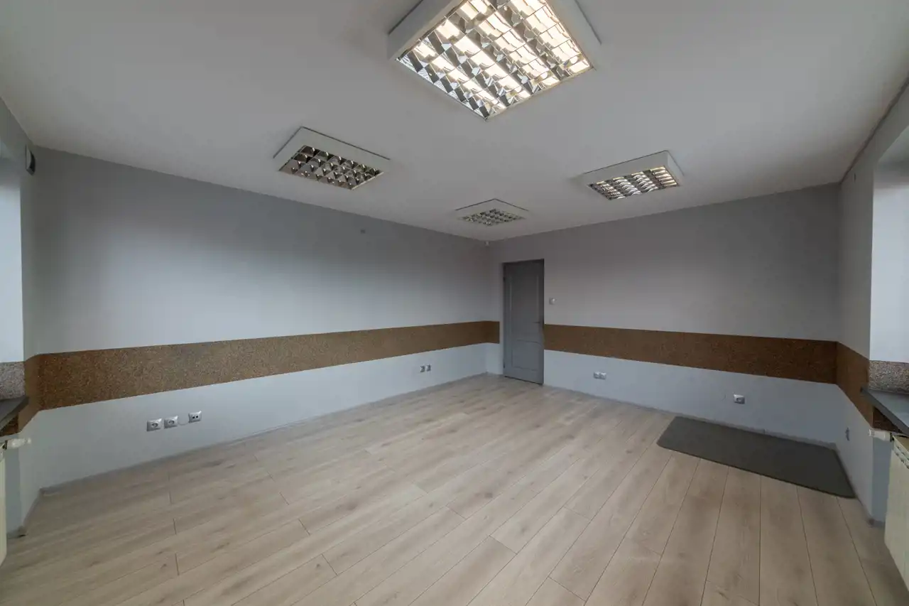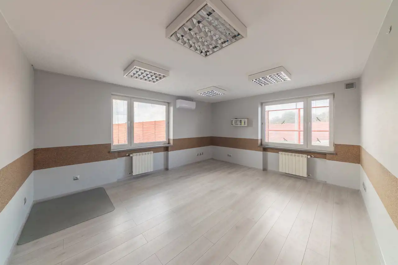 W budynku znajduje się ok. 20 lokali biurowych, kuchnia, recepcja. Każde pomieszczenie posiada alarm, dodatkowo wspólny monitoring, recepcja. Przed budynkiem miejsca parkingowe dla pracowników i dla klientów. Budynek ogrodzony.