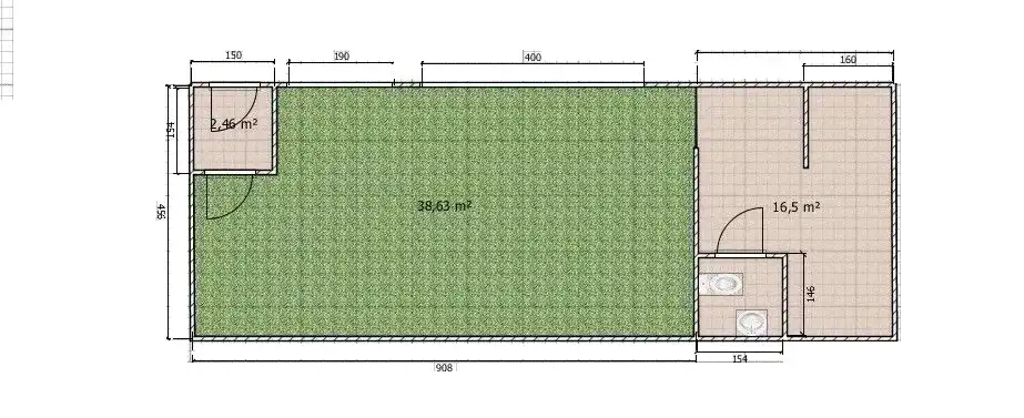 - obecny układ: 2 pomieszczenia oraz łazienka,