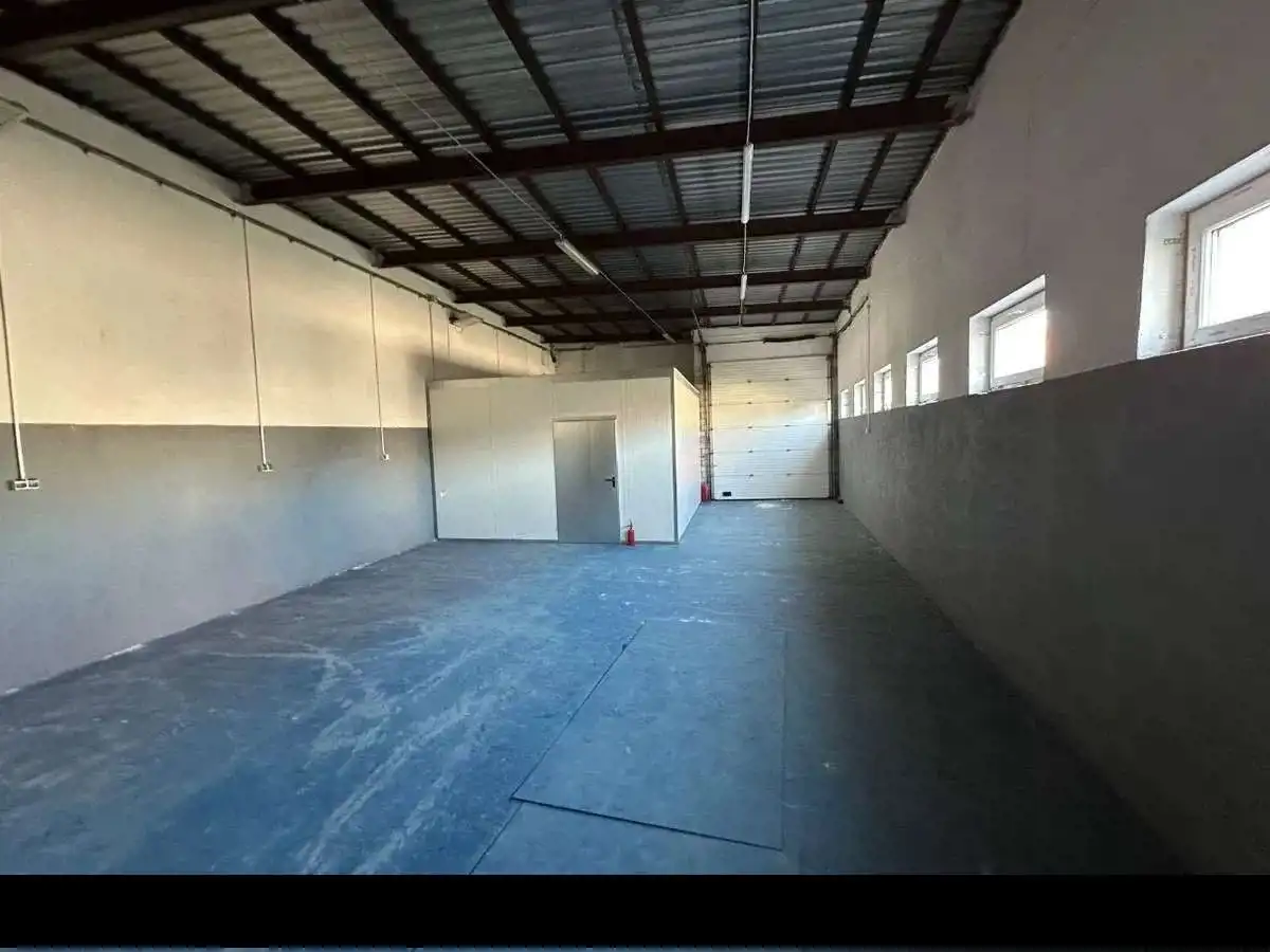 - hala z bramą wjazdową o powierzchni 160 mkw , dodatkowo pomieszczenie socjalne około 12 mkw i łazienka 3 mkw