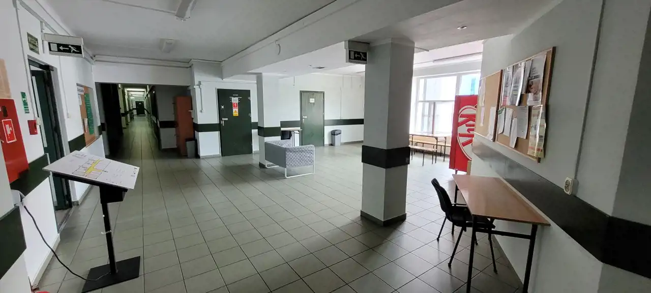 W ofercie gotowe sale wykładowe, pomieszczenia administracyjne, zaplecze socjalne (wielostanowiskowe toalety), szerokie korytarze.Powierzchnia rozłożona jest na na kilku kondygnacjach: