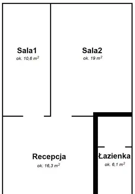 Lokal składa się z recepcji, sali konferencyjnej, pomieszczenia biurowego z trzema stanowiskami, części socjalnej.