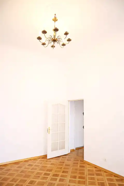 Wnętrze z zachowaniem stylu: sztukaterie na suficie, dębowy parkiet, drewniane okna.