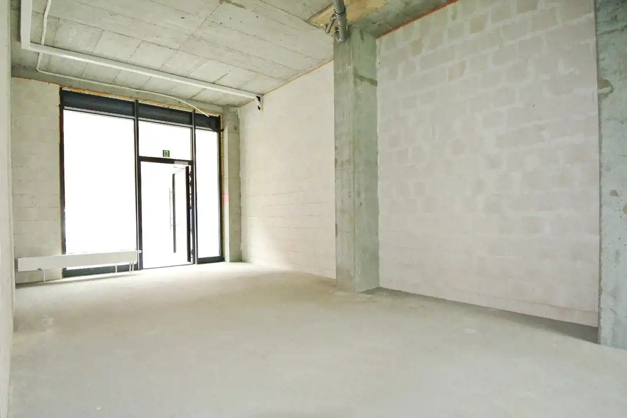 The unit is in a developer's finish state, allowing potential tenants to customize it as needed. The space is equipped with ventilation systems suitable for gastronomy and has a permit for installing air conditioning.