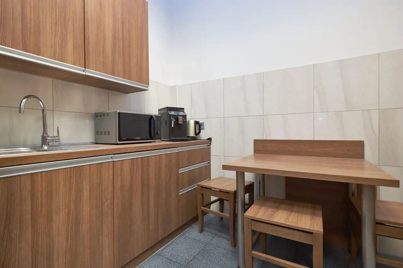 Zaplecze socjalne: Kompletne zaplecze socjalne obejmuje kuchnię oraz toaletę, zapewniając wygodę dla pracowników.