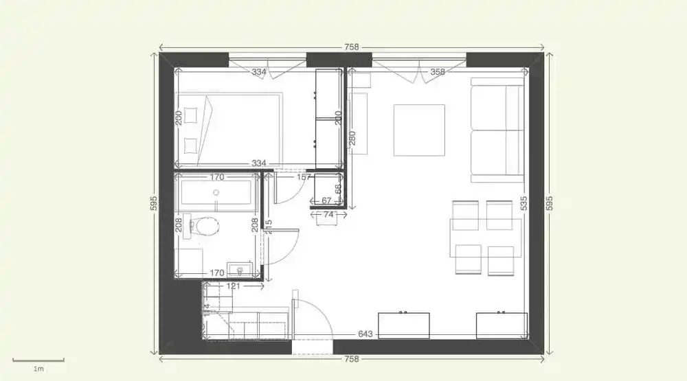 - Charakterystyka mieszkania 37.5 m2, 2 pokoje