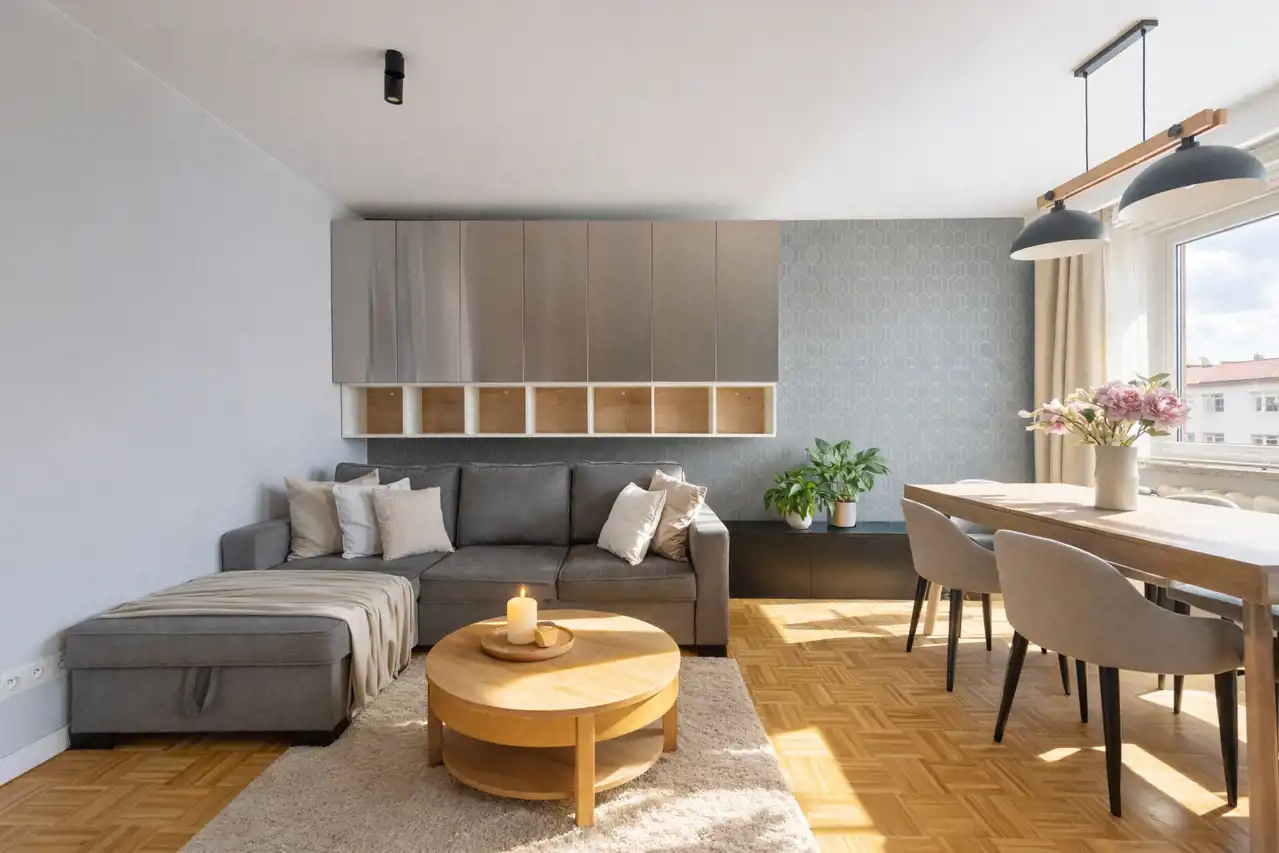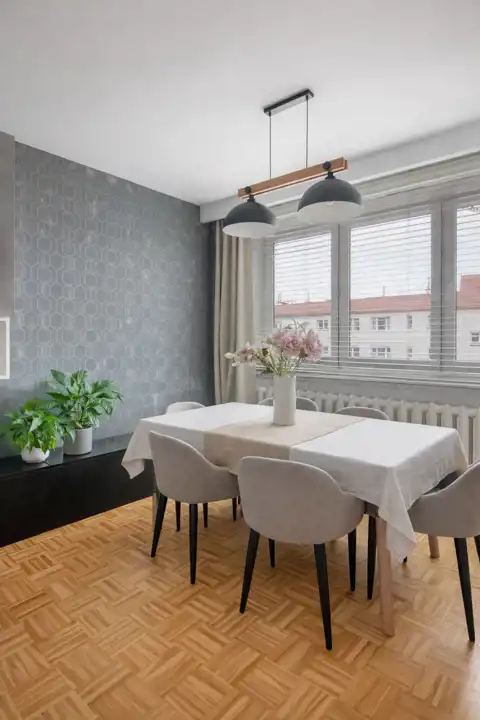 Wysoki standard wykończenia: Właściciele urządzali mieszkanie z myślą o własnych potrzebach, dbając o jakość materiałów i funkcjonalność przestrzeni. W mieszkaniu położono parkiet sosnowy, który nadaje wnętrzom elegancji i ciepła. Mieszkanie zostało zaprojektowane przez profesjonalne studio projektowe, po generalnym remoncie w 2017 r. Wszystkie meble zostały wykonane na wymiar z wysokiej klasy materiałów. Ściany mieszkania są bardzo dobrze wyciszone.