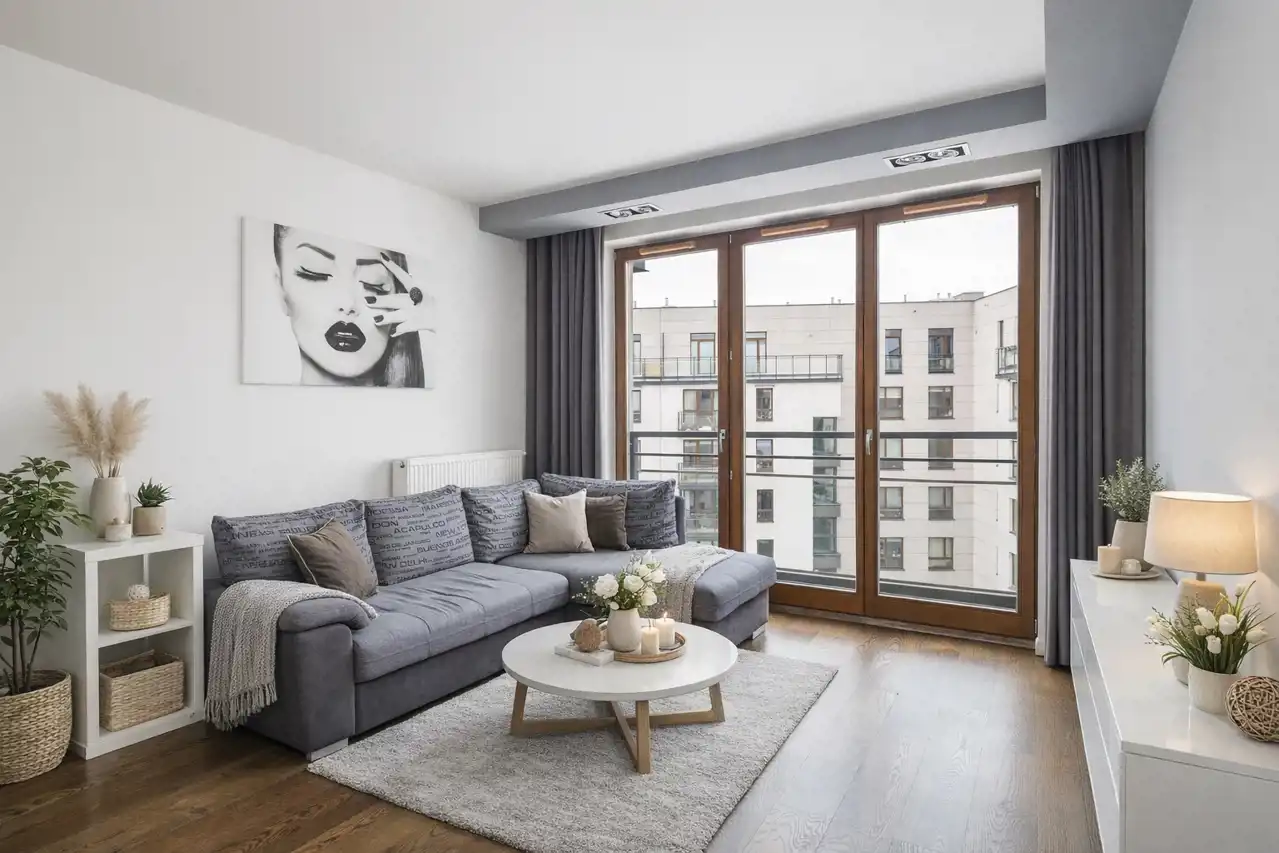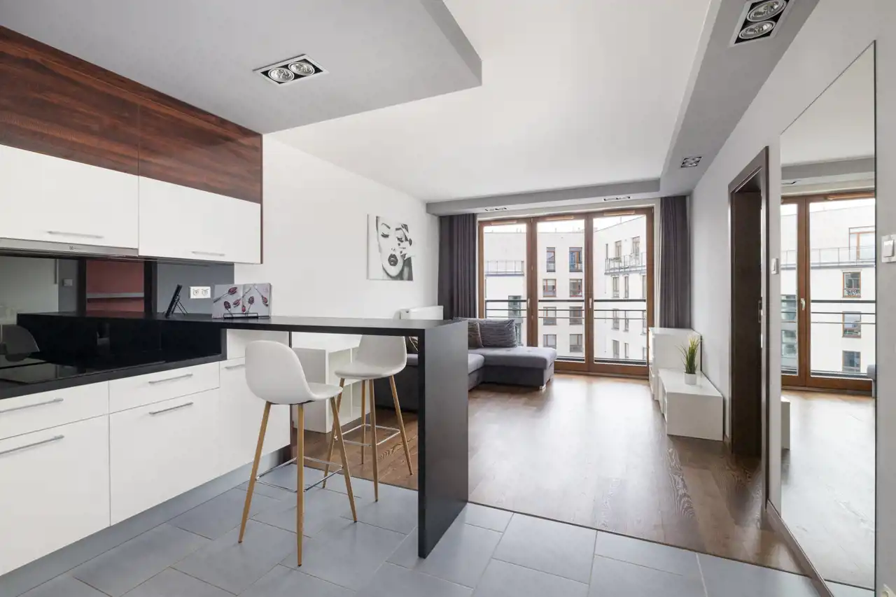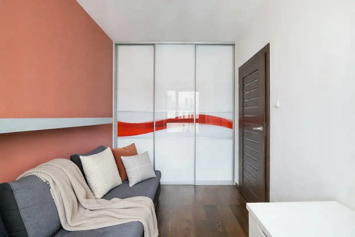 Jednopoziomowe, 2-pokojowe mieszkanie o łącznej powierzchni 40,52 m², usytuowane na piątym piętrze sześciopiętrowego apartamentowca z 2014 roku, na zamkniętym osiedlu z monitoringiem. Lokal składa się z salonu połączonego z aneksem kuchennym, sypialni oraz łazienki. Mieszkanie wykończone zostało materiałami wysokiej jakości, z dbałością o detale: na podłodze położono deskę barlinecką, gres oraz wysokiej klasy płytki ceramiczne.