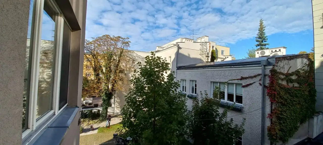 Ogromnym atutem jest duży balkon wychodzący na duże, zadbane podwórze.