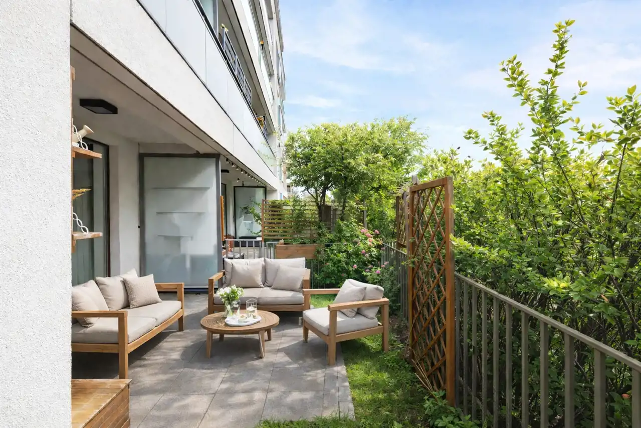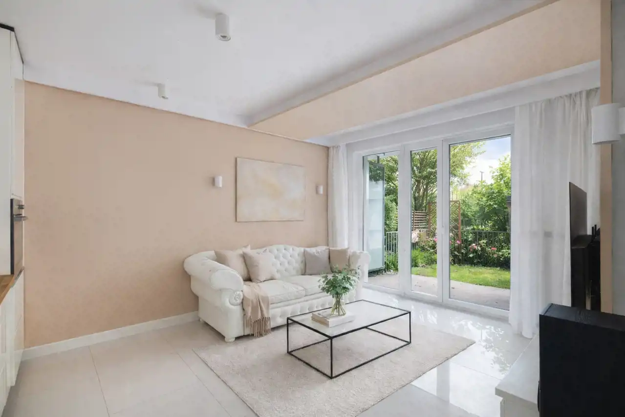 Bezpośrednim atutem jest wyjście do prywatnego ogródka (ok. 30 m²), który stanowi naturalne przedłużenie salonu i daje możliwość stworzenia własnej strefy relaksu.