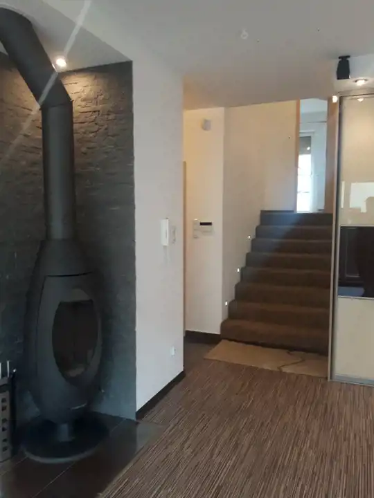 Czterolokalowy budynek mieszkalny, dwa mieszkania na parterze i dwa na piętrze. Materiał budowlany Porotherm docieplony 12cm Styropianem. Instalacje: prąd, gaz, wodociągi, szambo (kanalizacja na przestrzeni najbliższych dwóch lat, osiedle zgłoszone do podłączenia), światłowód Orange.