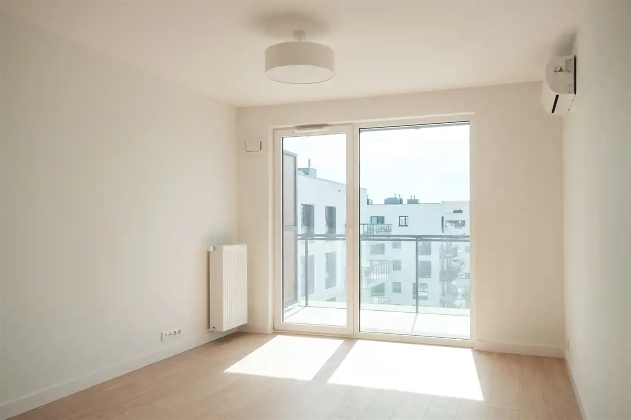 Mieszkanie jasne i przestronne, z dużymi oknami i balkonem, posiada klimatyzację.