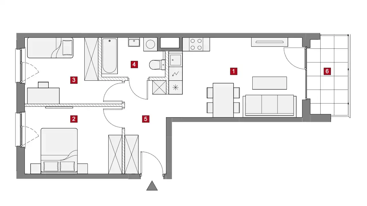 - Charakterystyka mieszkania 57.35 m2, 3 pokoje