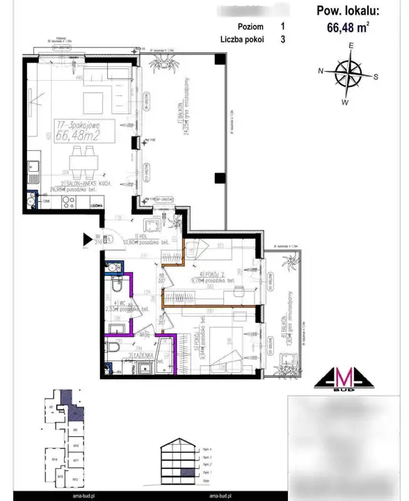 - Charakterystyka mieszkania 66.48 m2, 3 pokoje