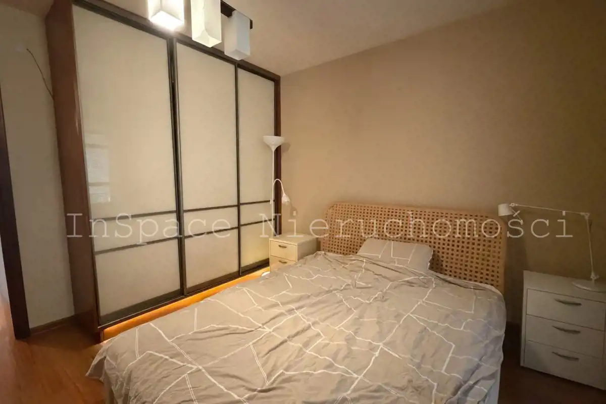 -Sypialnia- wyposażona łóżko, szafę w zabudowie, stoliki nocne.