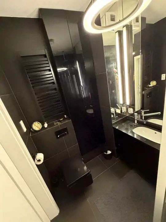 - łazienki z marmurowym blatem i prysznicem typu walk-in,