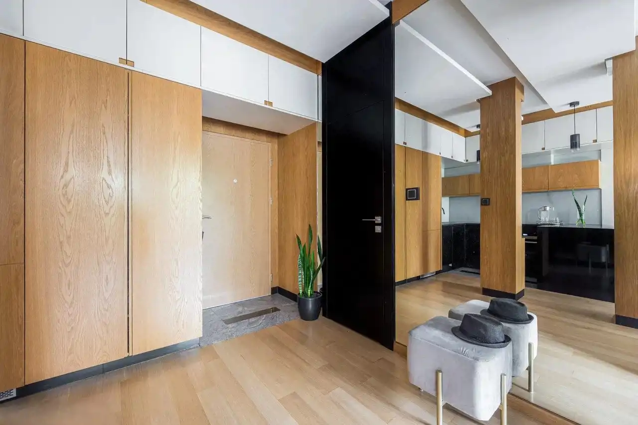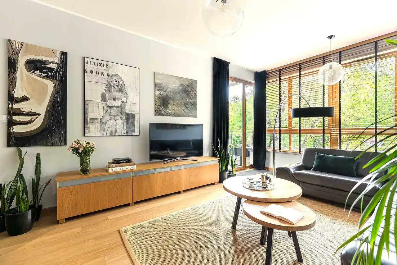 Mieszkanie w apartamentowcu z 2009 roku na Mokotowie, przy ul. Obrzeżnej, w sąsiedztwie Toru Wyścigów Konnych.
