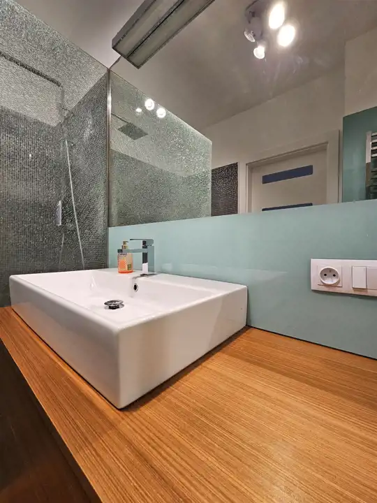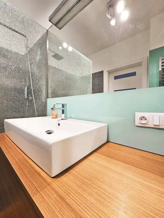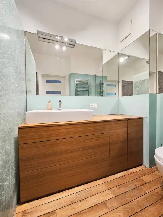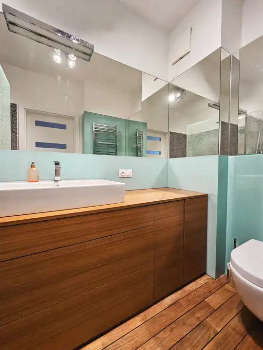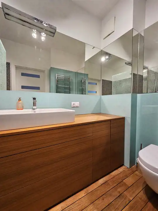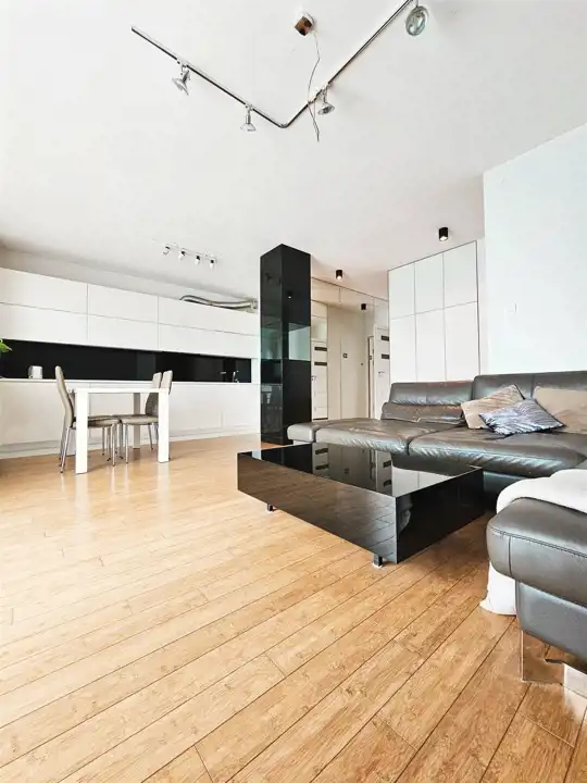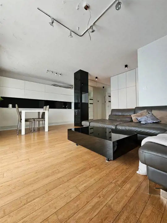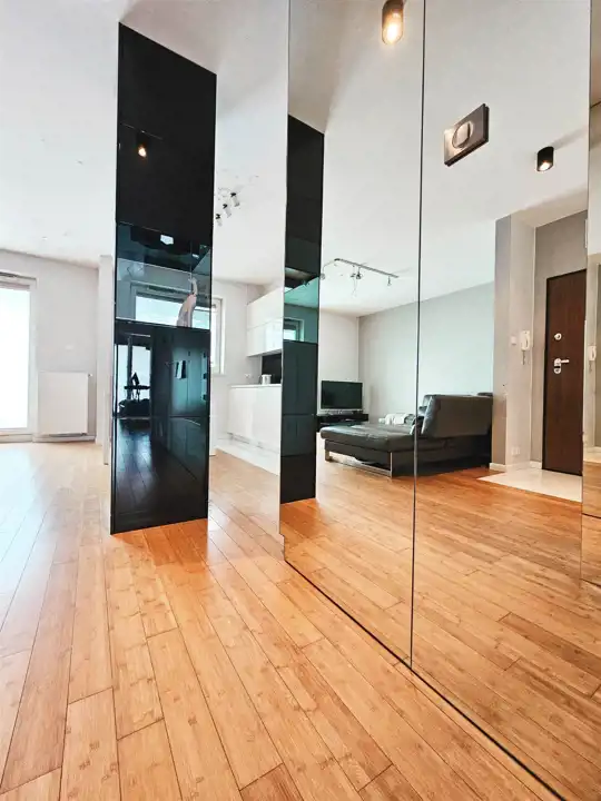 Mieszkanie funkcjonalnie zaprojektowane i wykończone w wysokim standardzie. Mieszkanie posiada wysokiej jakości meble w zabudowie wykonane na zamówienie, drewniane podłogi (parkiet egzotyczny, w łazience teak), ergonomiczną kuchnię wyposażoną w sprzęty znanych marek.