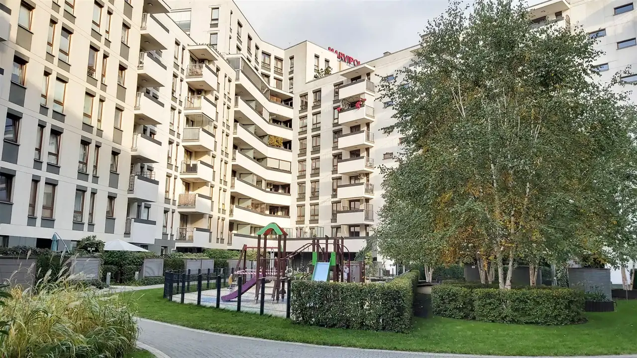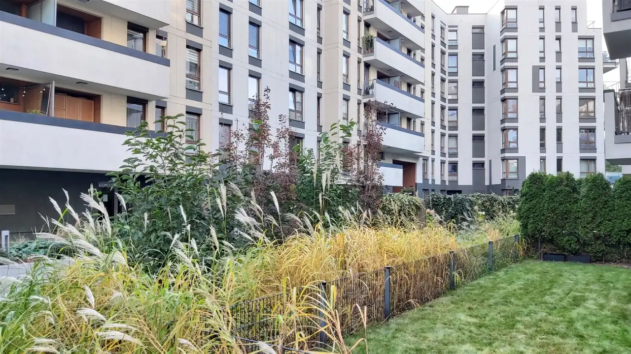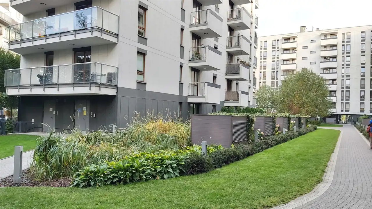 Mieszkanie znajduje się w apartamentowcu z 2013 roku o podwyższonym standardzie na zamkniętym osiedlu z ochroną i recepcją. Do wyłącznej dyspozycji mieszkańców jest sauna, oraz siłownia. Na terenie osiedla jest bardzo zadbane zielone patio, oraz miejsce do przechowywania rowerów.