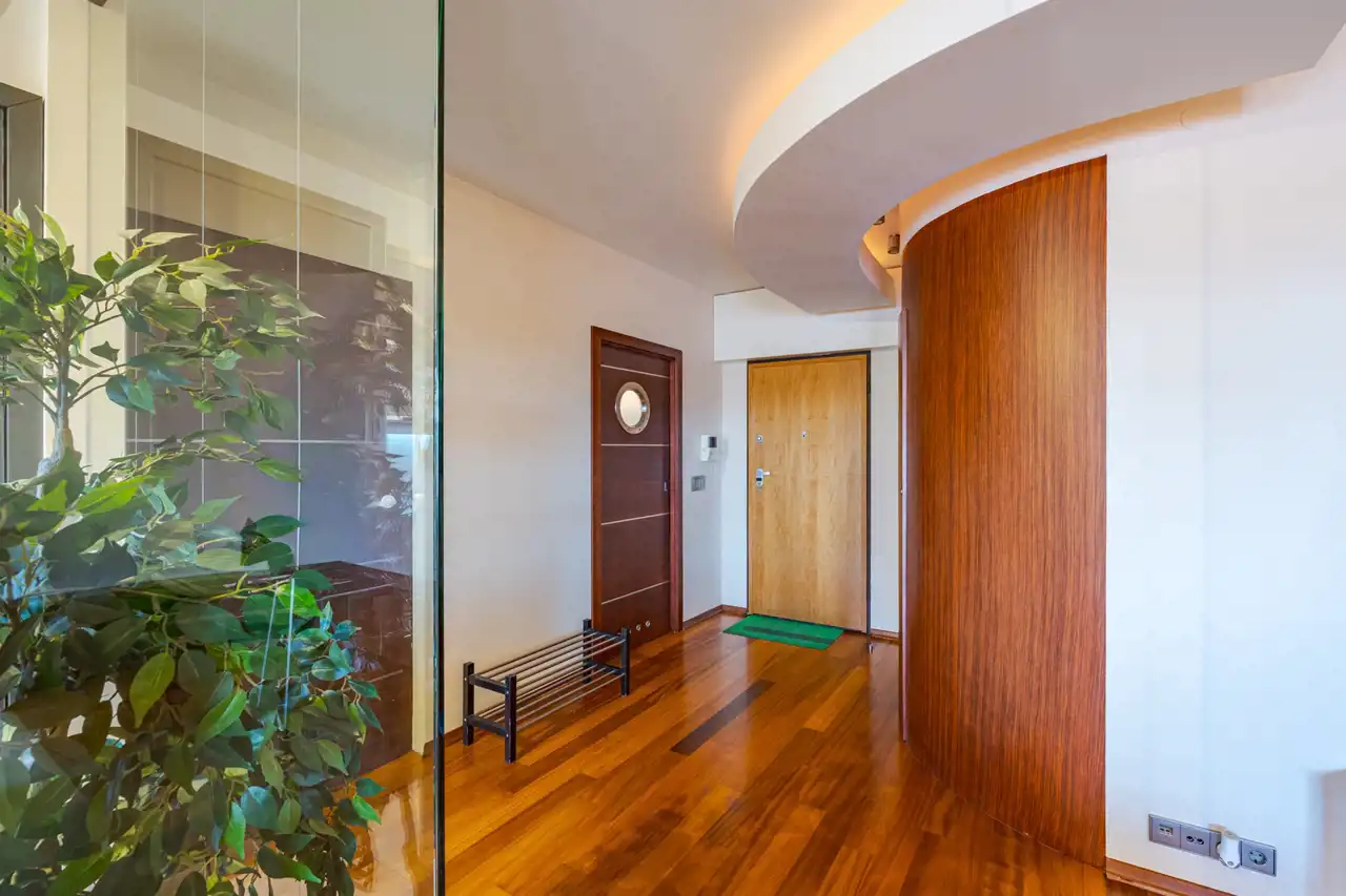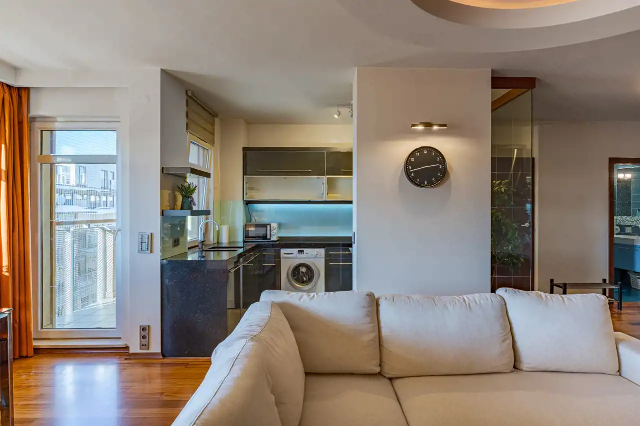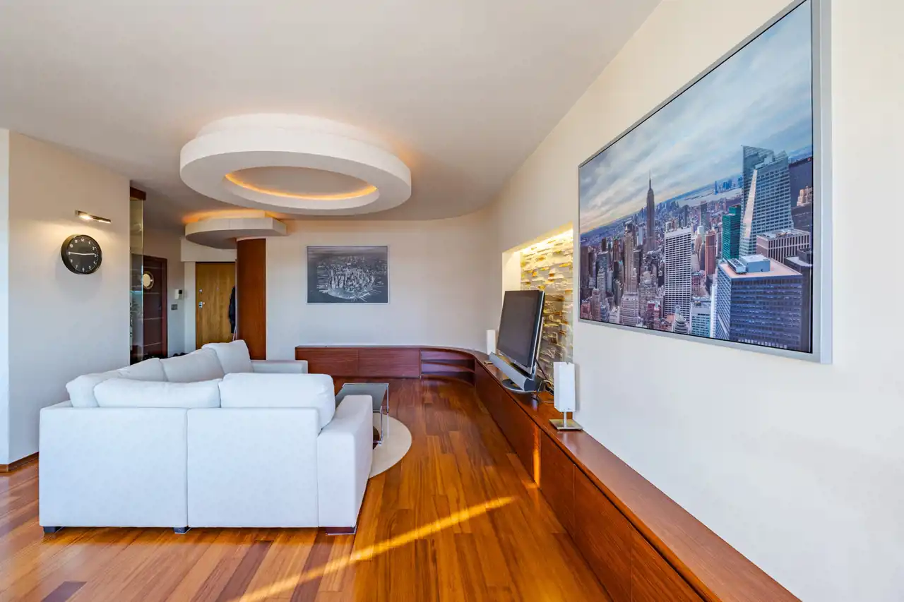 Mieszkanie jest w pełni umeblowane i wyposażone w sprzęt RTV, AGD i system zarządzania oświetleniem.