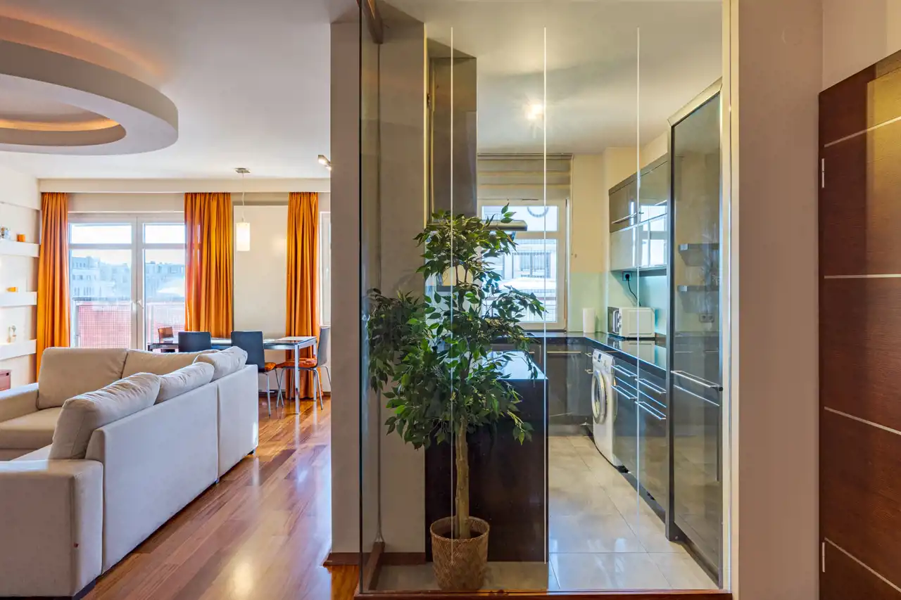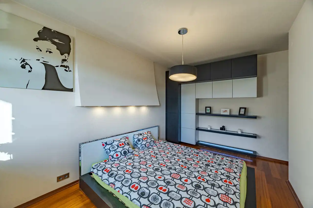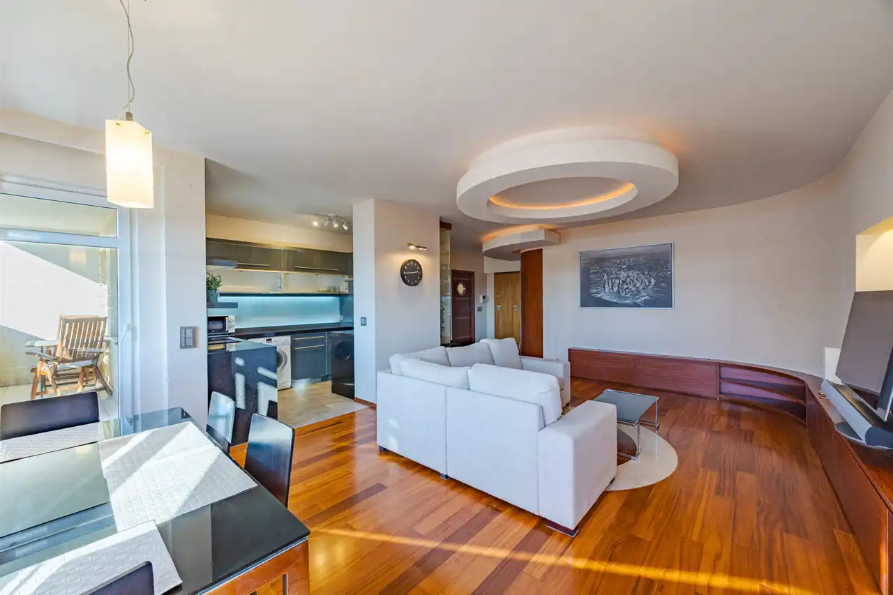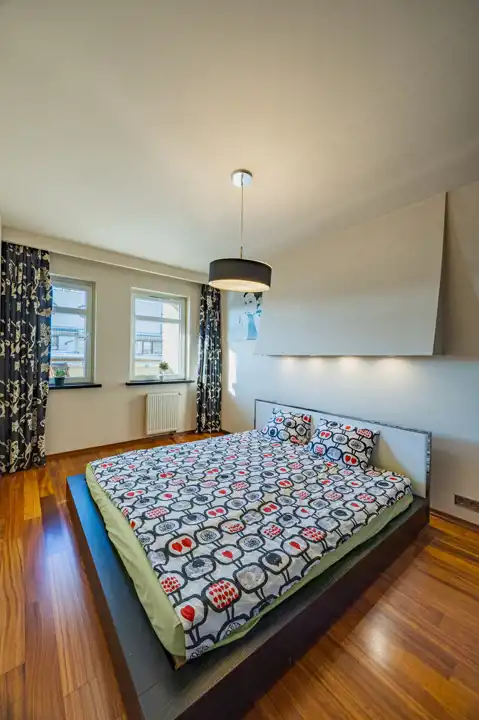 Mieszkanie jest w pełni umeblowane i wyposażone w sprzęt RTV, AGD i system zarządzania oświetleniem.